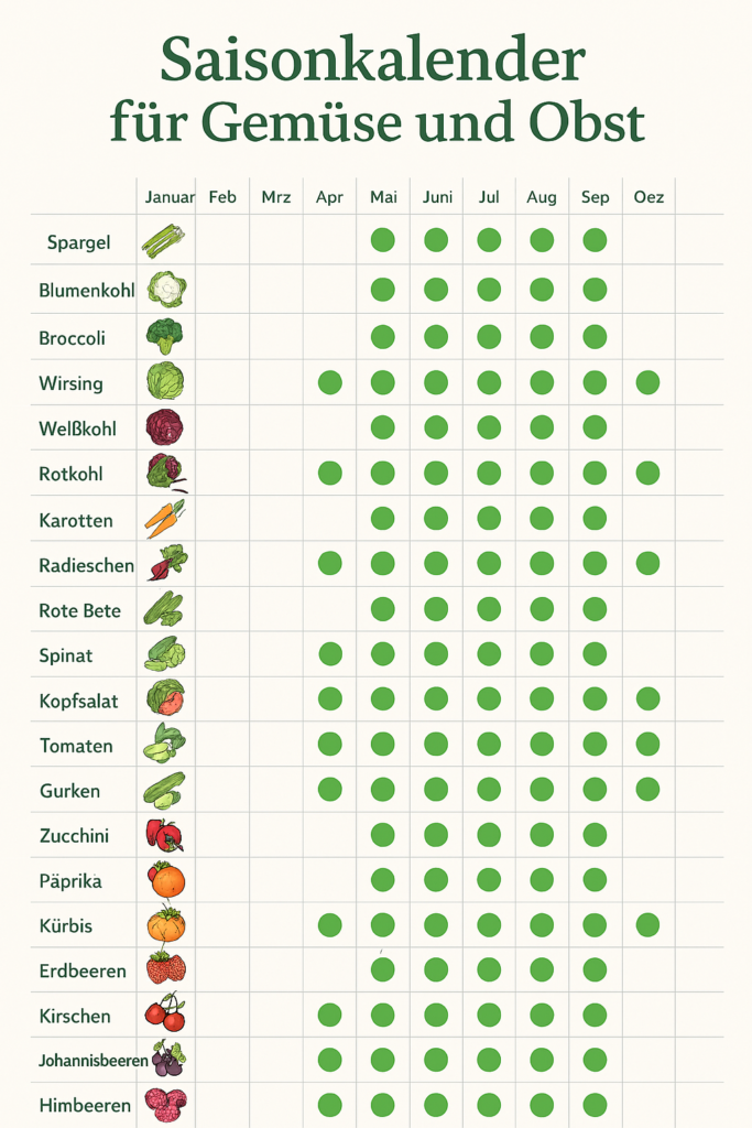 - Kaufe Obst und Gemüse der Saison – sie sind günstiger und frisch.